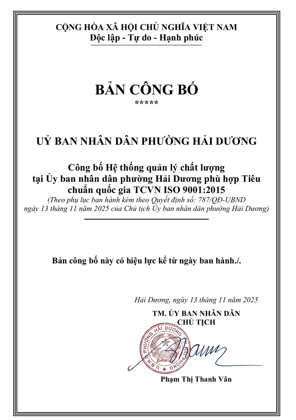Chịu trách nhiệm về nội dung: Phạm Thị Thanh Vân - Chủ tịch Uỷ ban nhân dân Phường Hải Dương