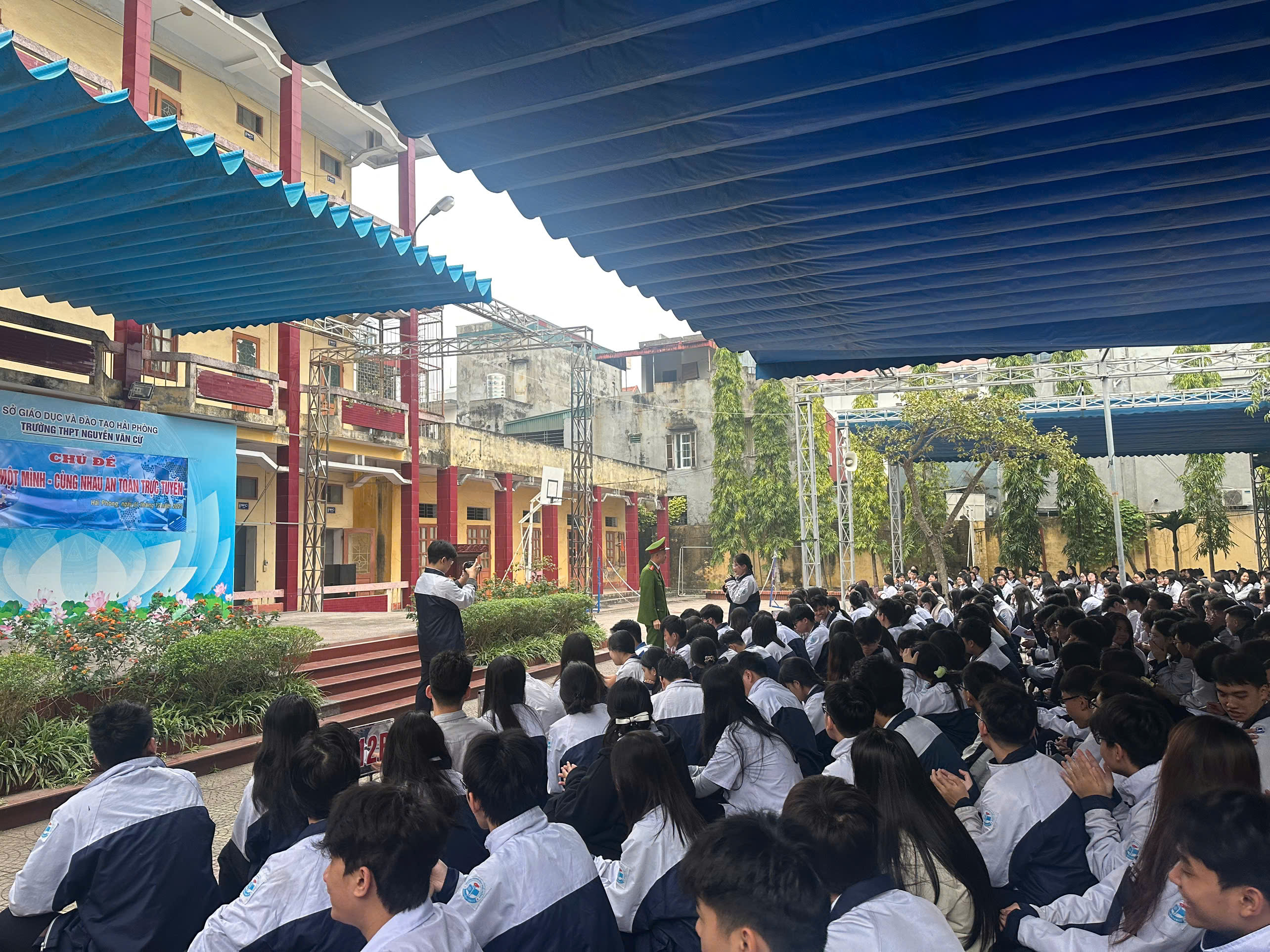 CÔNG AN PHƯỜNG HẢI DƯƠNG TUYÊN TRUYỀN CHIẾN DỊCH " KHÔNG MỘT MÌNH"- " CÙNG NHAU AN TOÀN TRỰC TUYẾN" TẠI TRƯỜNG THPT NGUYỄN VĂN CỪ(CƠ SỞ 2)