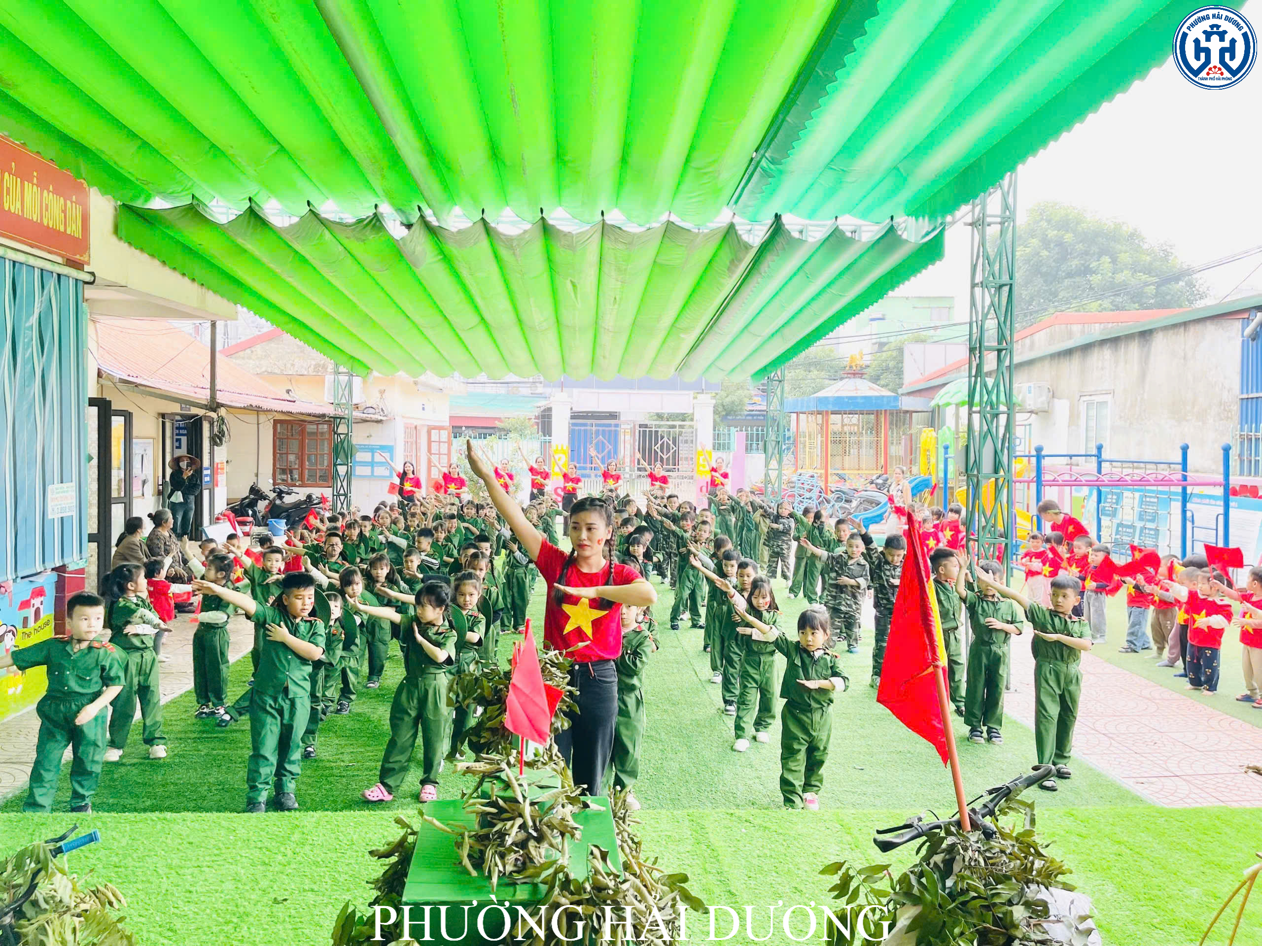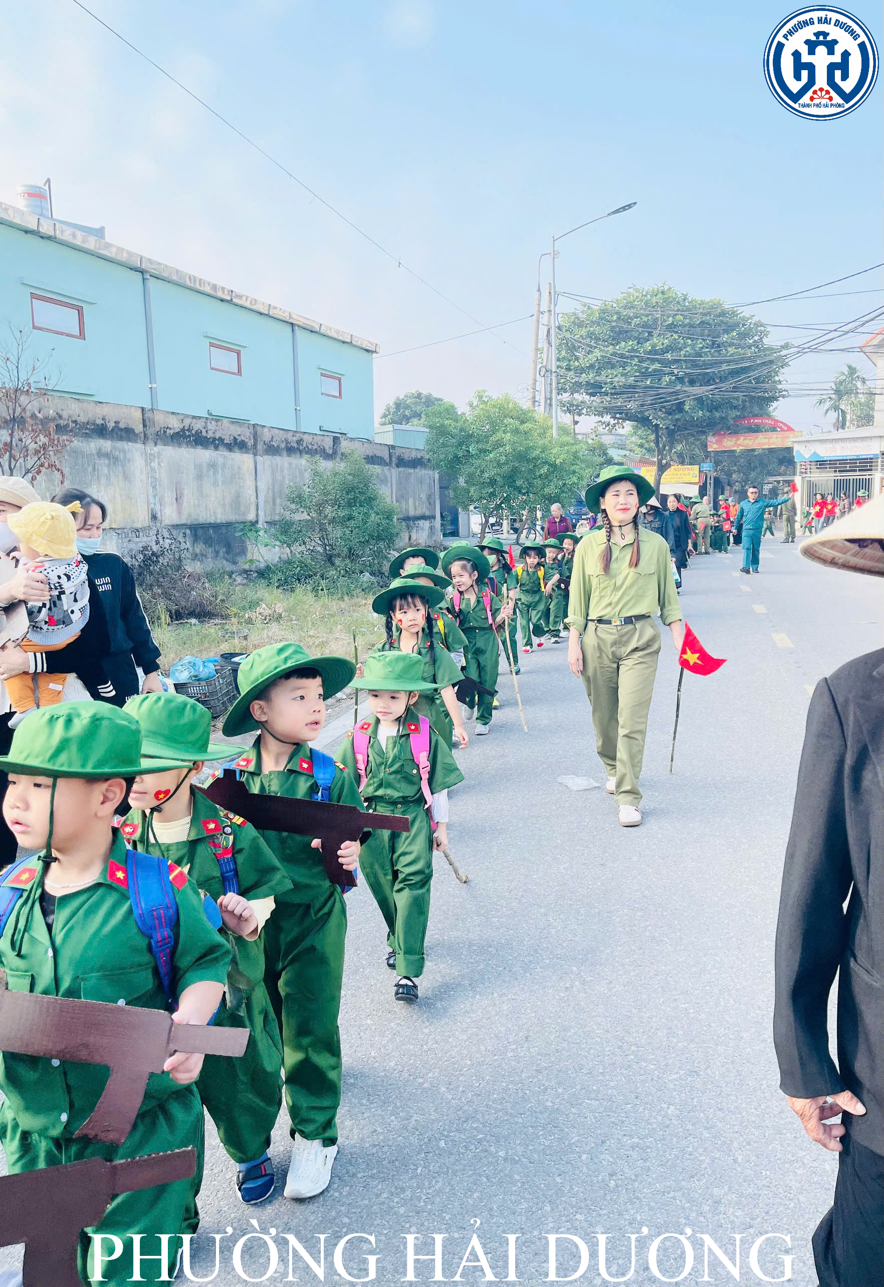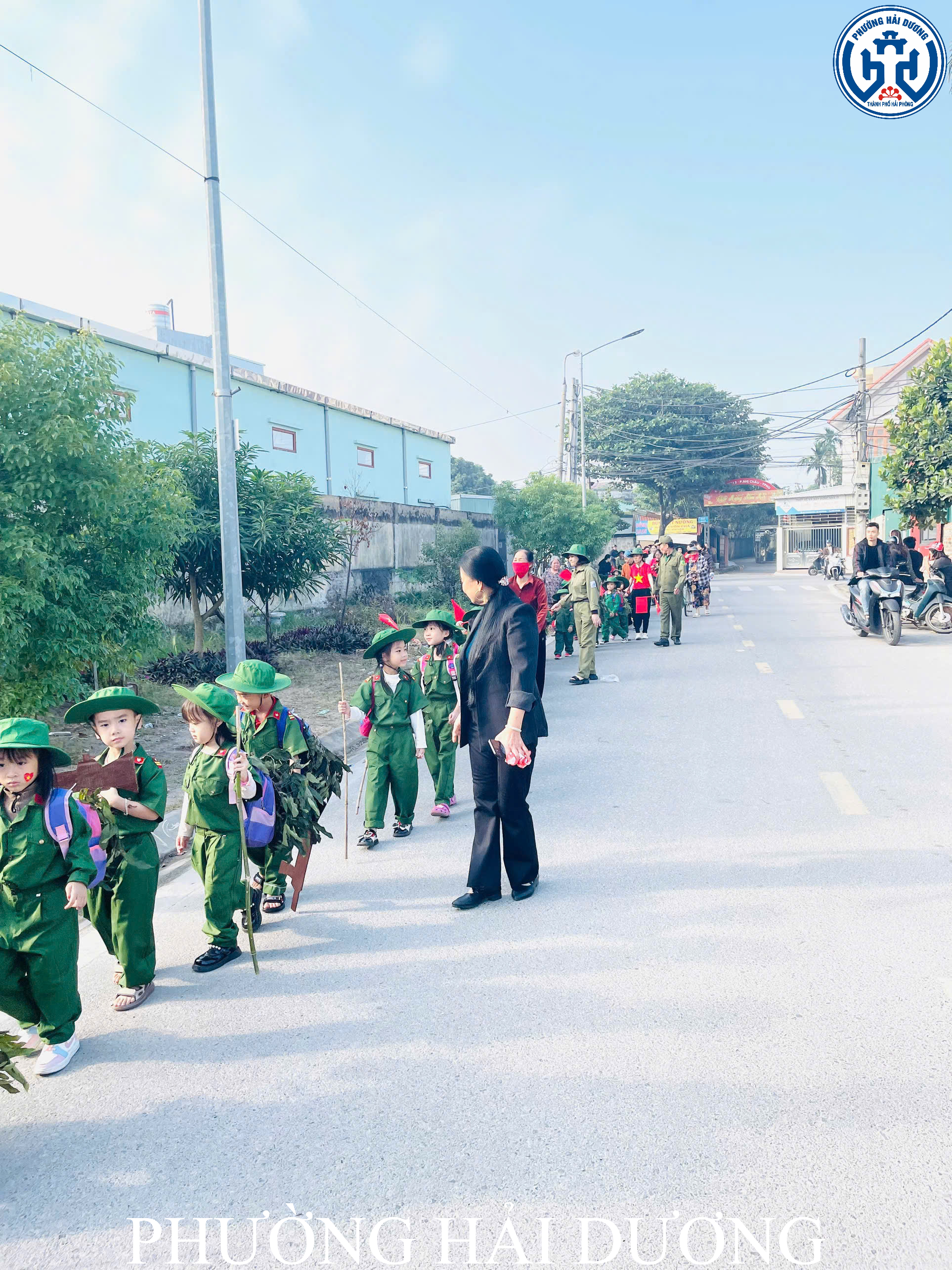Chương trình diễn ra trang nghiêm, trật tự và tuyệt đối an toàn với sự hỗ trợ của Ban Chỉ huy Quân sự phường Hải Dương, lực lượng dân quân tự vệ tổ dân phố số 3 cùng sự đồng hành của các bậc phụ huynh. Sự phối hợp nhịp nhàng giữa nhà trường và các lực lượng đã giúp các bé có một buổi diễu hành trọn vẹn, đầy ắp niềm vui. Ngoài phần diễu hành, các bé còn tham gia đồng diễn “Nối vòng tay lớn” và biểu diễn những tiết mục múa hát hướng tới ngày 22/12. Những vòng tay nhỏ nối liền nhau, những động tác khỏe khoắn và tiếng hát trong trẻo vang lên trong gió khiến sân trường trở nên rực rỡ, ấm áp hơn.