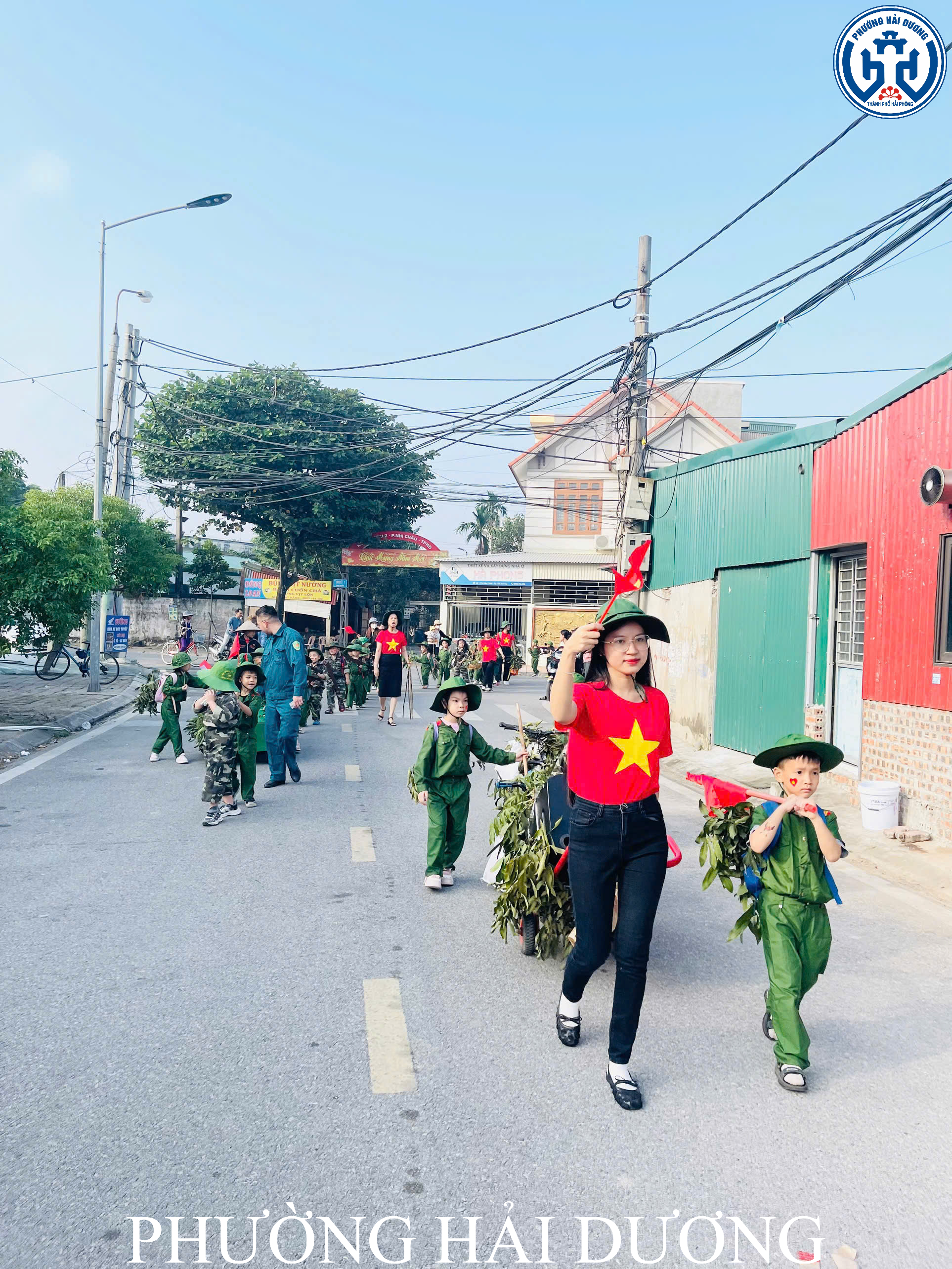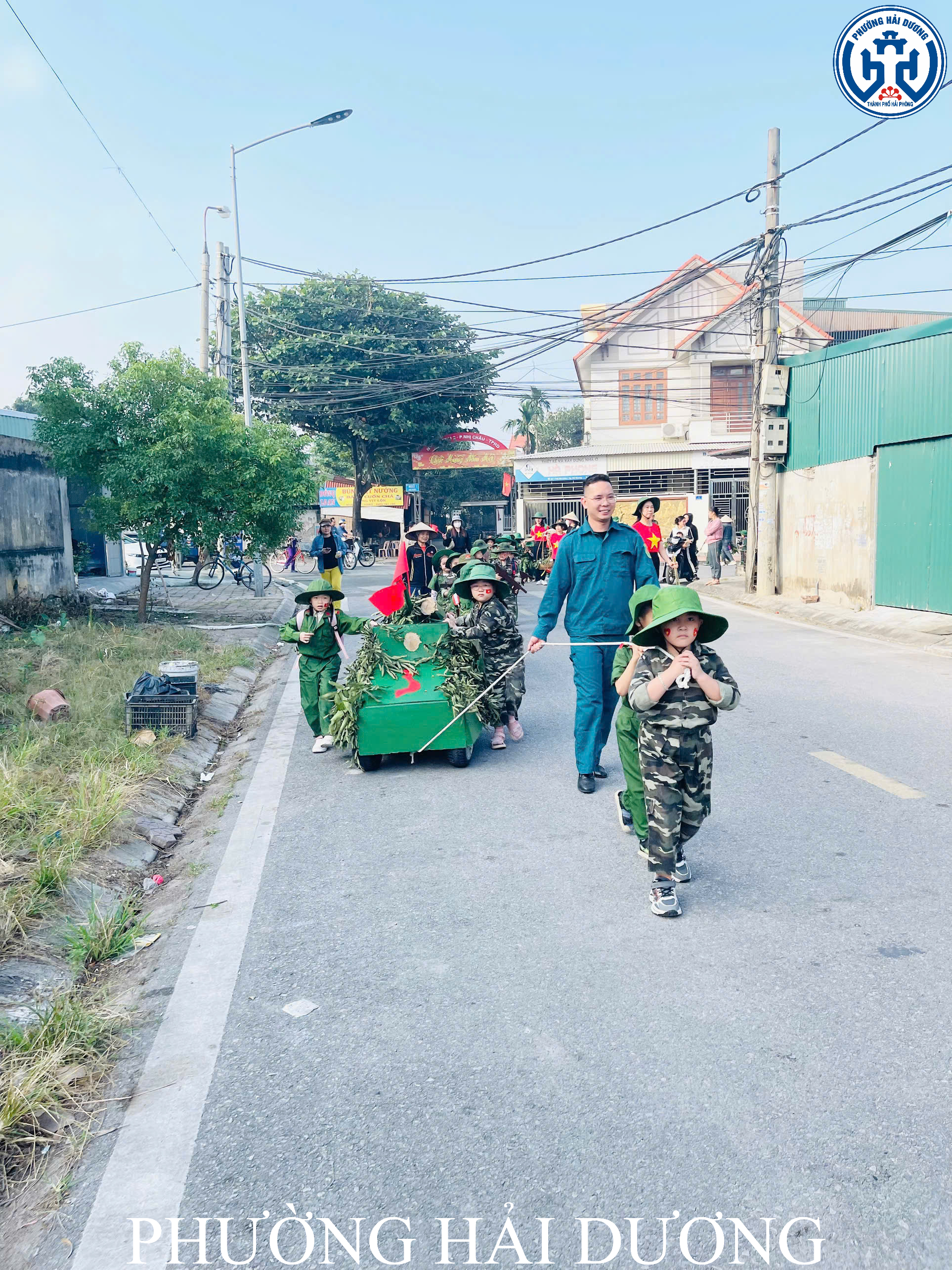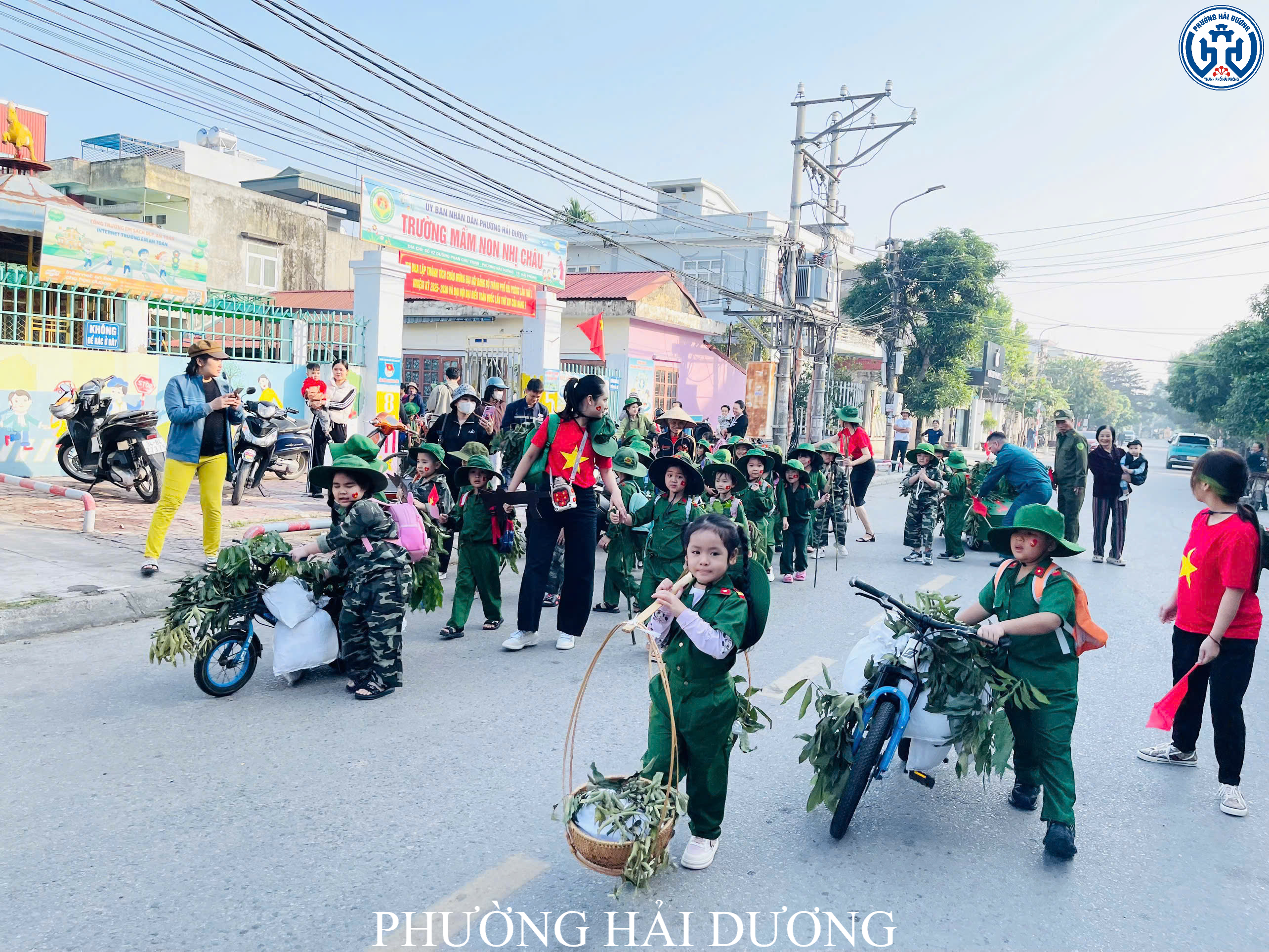 Chương trình diễn ra trang nghiêm, trật tự và tuyệt đối an toàn với sự hỗ trợ của Ban Chỉ huy Quân sự phường Hải Dương, lực lượng dân quân tự vệ tổ dân phố số 3 cùng sự đồng hành của các bậc phụ huynh. Sự phối hợp nhịp nhàng giữa nhà trường và các lực lượng đã giúp các bé có một buổi diễu hành trọn vẹn, đầy ắp niềm vui. Ngoài phần diễu hành, các bé còn tham gia đồng diễn “Nối vòng tay lớn” và biểu diễn những tiết mục múa hát hướng tới ngày 22/12. Những vòng tay nhỏ nối liền nhau, những động tác khỏe khoắn và tiếng hát trong trẻo vang lên trong gió khiến sân trường trở nên rực rỡ, ấm áp hơn.