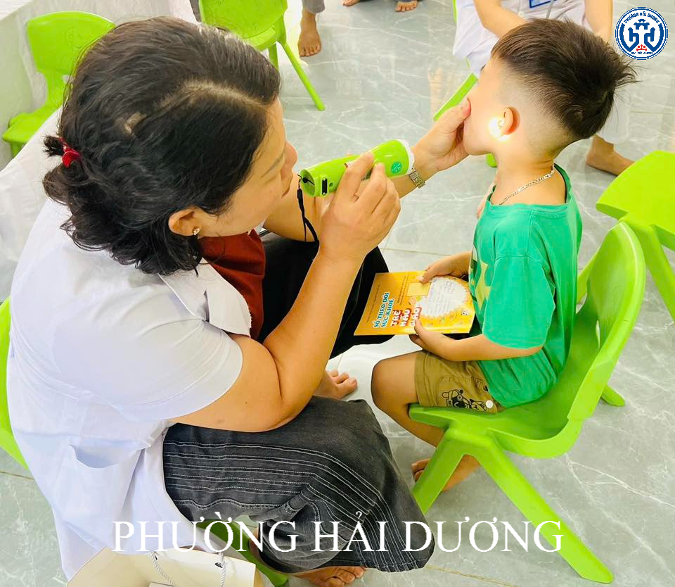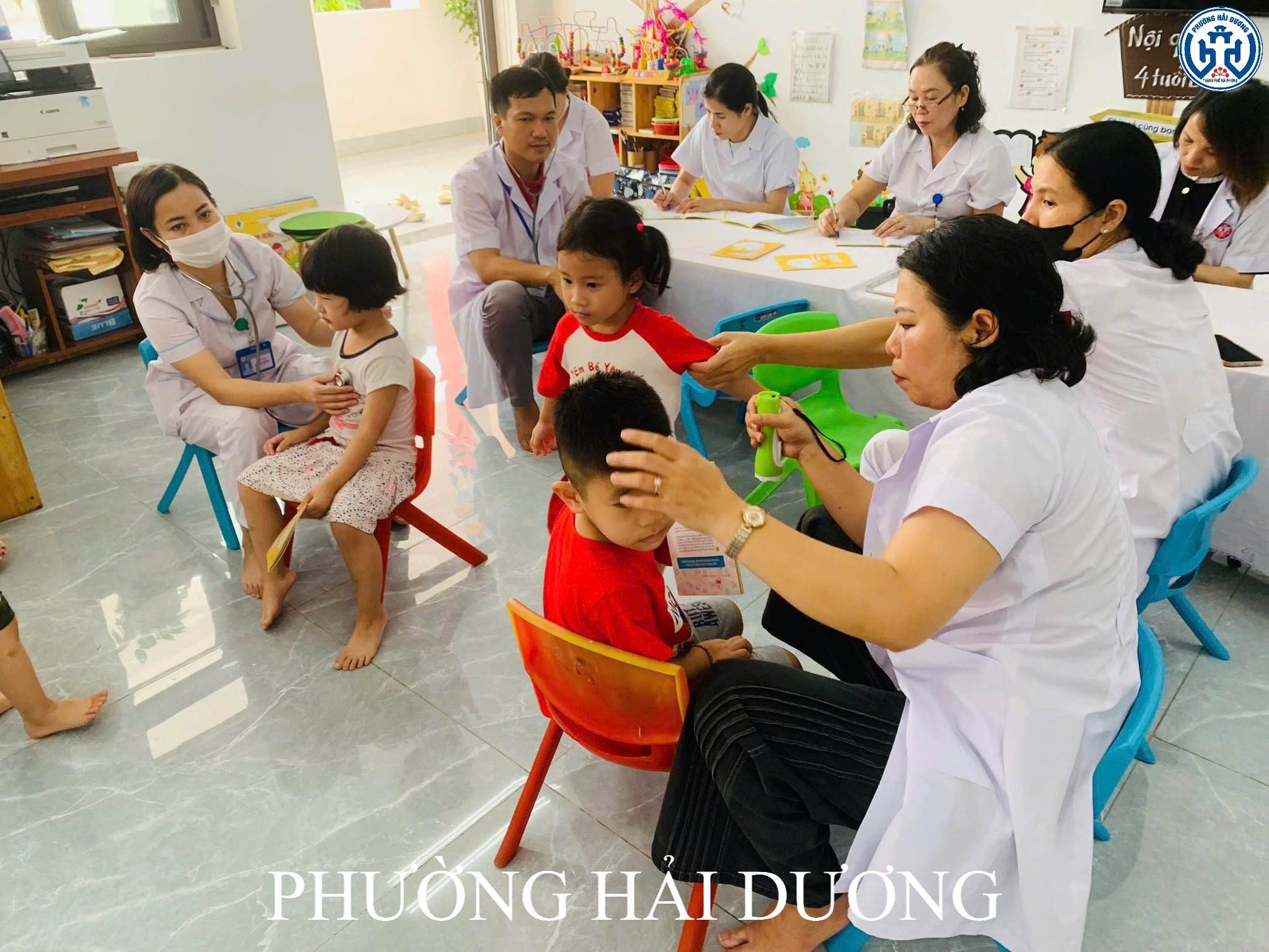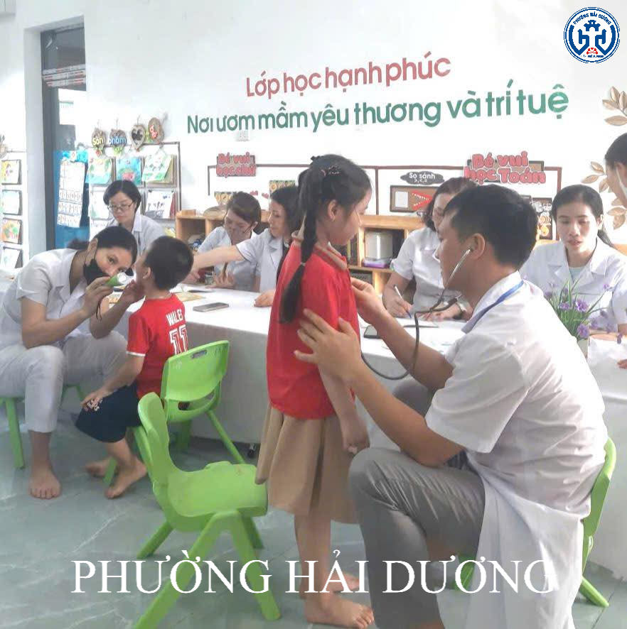 Ngày 15/10, Trường Mầm non Quang Trung, phường Hải Dương phối hợp với Trung tâm Y tế phường Hải Dương tổ chức khám sức khỏe định kỳ cho toàn bộ học sinh trong trường.