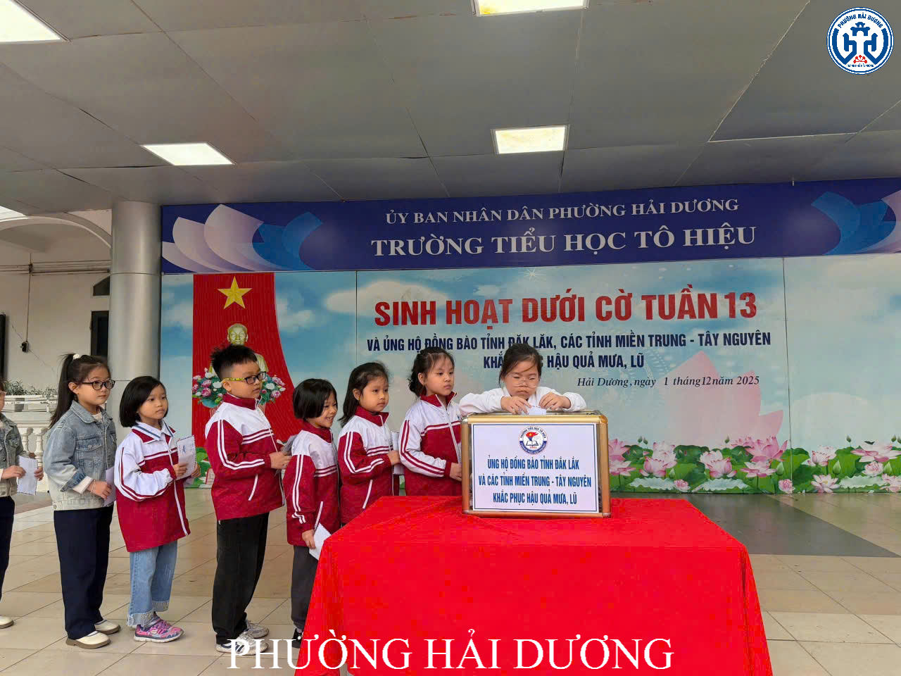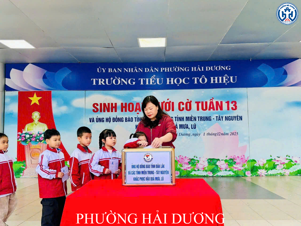 Sáng ngày 1/12, Trường Tiểu học Tô Hiệu phường Hải Dương tổ chức buổi sinh hoạt dưới cờ đặc biệt với chủ đề “Ấm áp tình yêu thương”. Điểm nhấn của buổi sinh hoạt là hoạt động quyên góp ủng hộ đồng bào tỉnh Đắk Lắk và các địa phương miền Trung, Tây Nguyên khắc phục hậu quả mưa lũ.