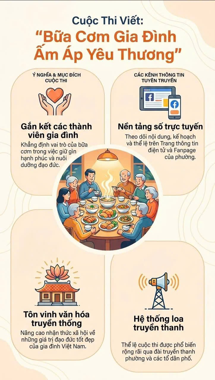 Nhằm lan tỏa những giá trị tốt đẹp của gia đình Việt Nam, Phòng Văn hóa và Xã hội phường Hải Dương đã triển khai tuyên truyền, vận động cán bộ, đảng viên và Nhân dân trên địa bàn tích cực hưởng ứng Cuộc thi viết với chủ đề “Bữa cơm gia đình ấm áp yêu thương”.
