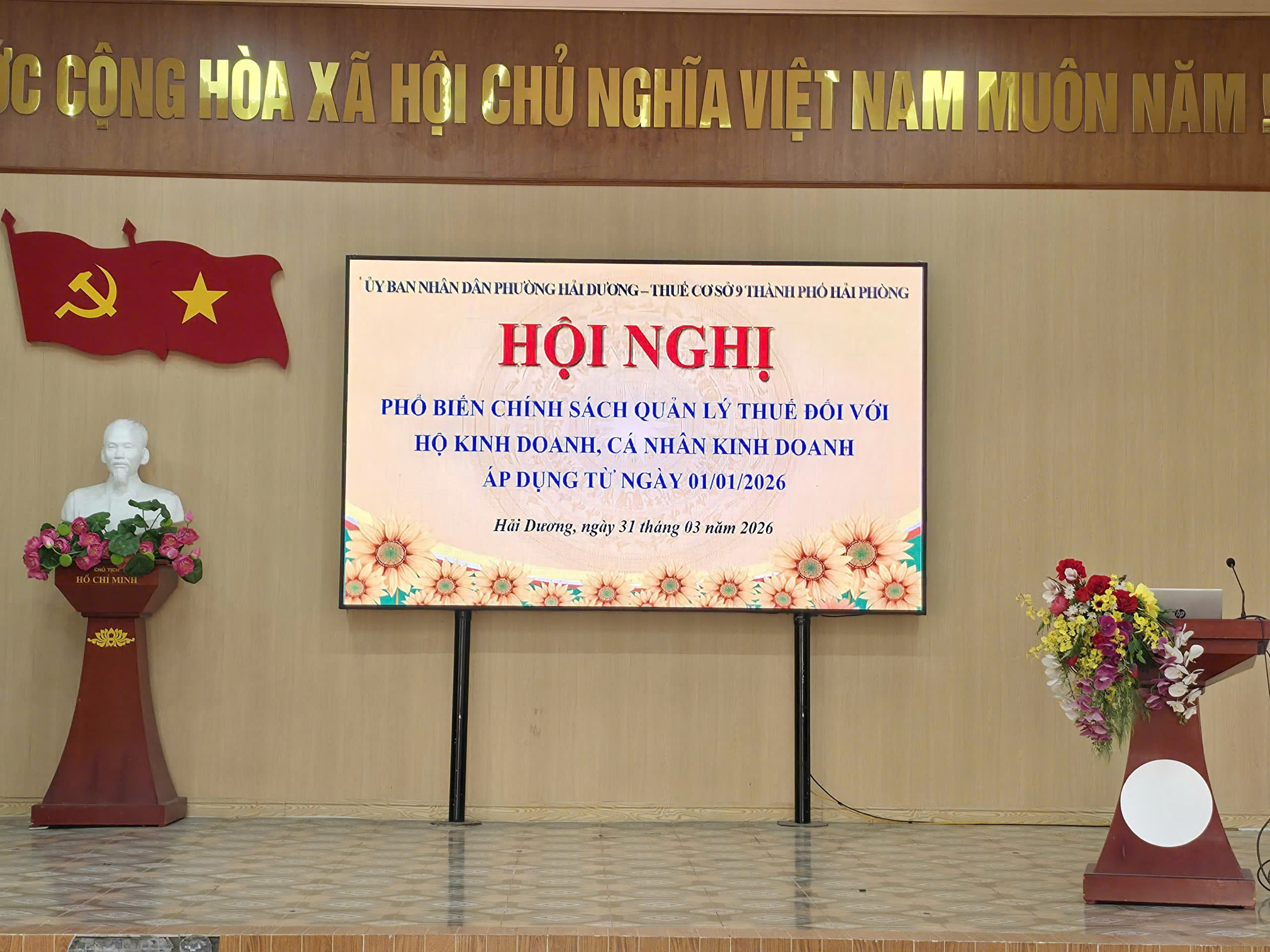 Chiều ngày 31/3, Thuế cơ sở 9 TP Hải Phòng phối hợp UBND phường Hải Dương tổ chức hội nghị triển khai chính sách thuế cho hơn 200 hộ, cá nhân kinh doanh trên địa bàn.