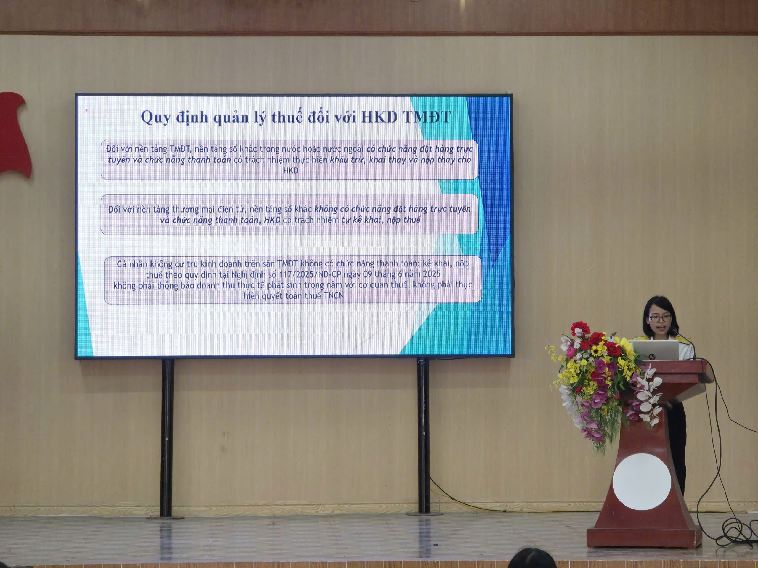 Tham dự hội nghị có lãnh đạo Thuế cơ sở 9, UBND phường cùng đại diện các bộ phận chuyên môn. Tại hội nghị, cơ quan thuế đã phổ biến những nội dung trọng tâm của Nghị định số 68/2026/NĐ-CP và Thông tư số 18/2026/TT-BTC, đồng thời nhấn mạnh các điểm mới trong quản lý thuế đối với hộ, cá nhân kinh doanh.