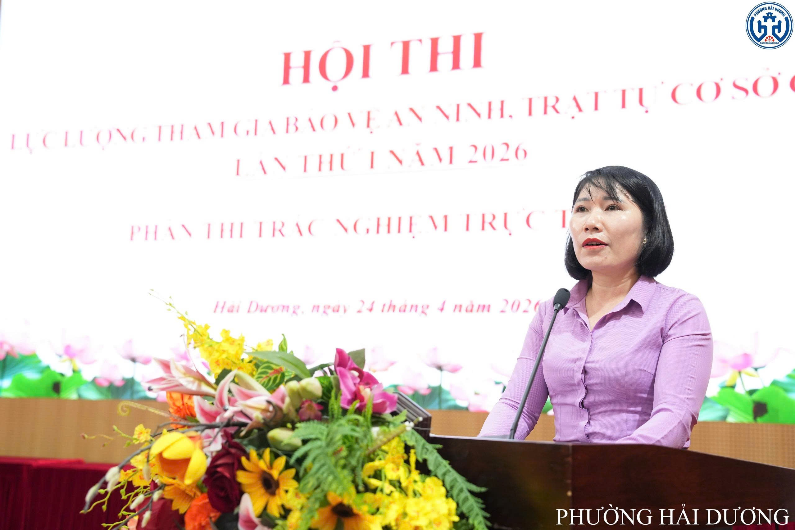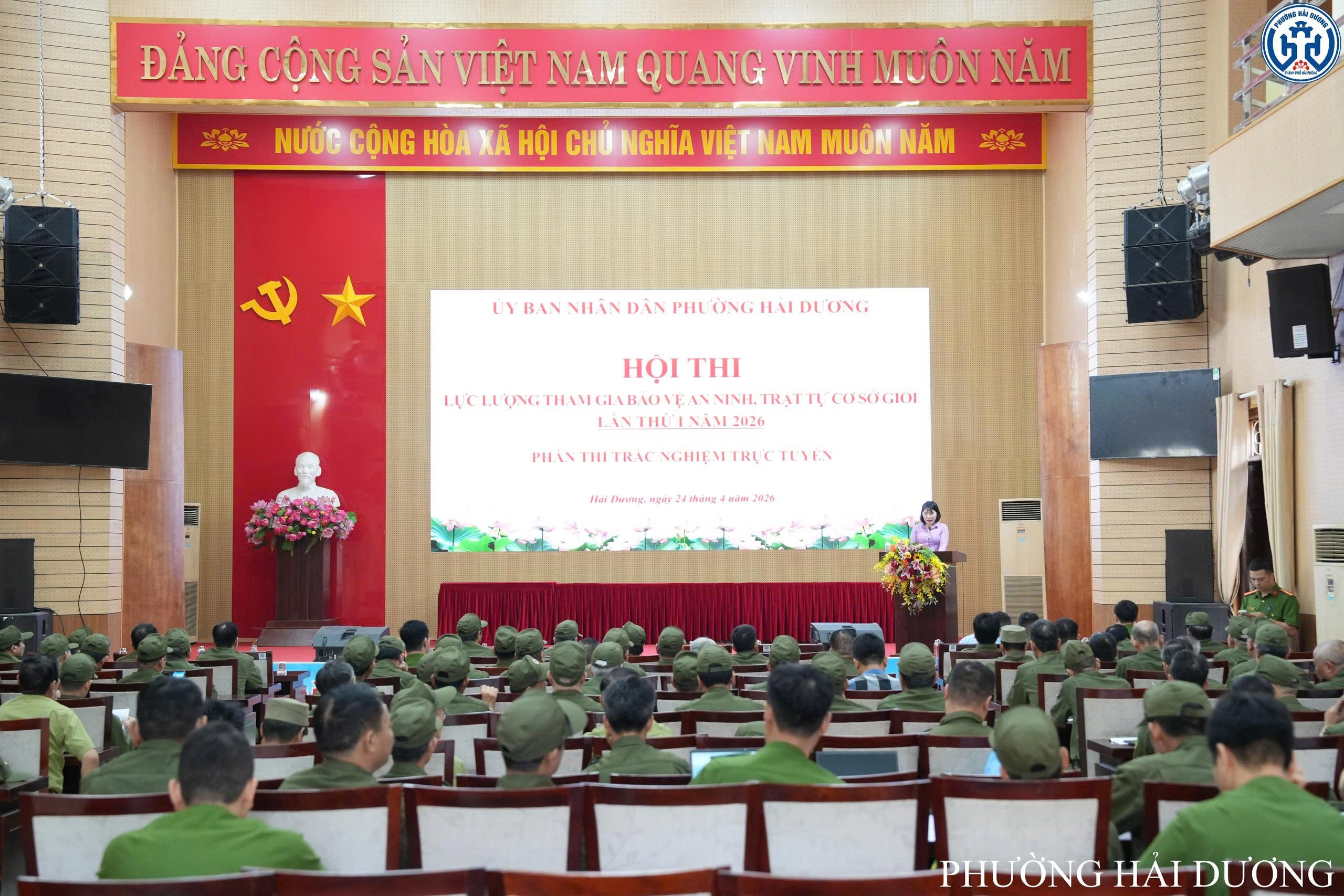 Sáng ngày 24/4, Ủy ban nhân dân phường Hải Dương tổ chức cho lực lượng tham gia bảo vệ an ninh, trật tự ở cơ sở trên địa bàn tham gia Hội thi trắc nghiệm trực tuyến trong khuôn khổ Hội thi “Lực lượng tham gia bảo vệ an ninh, trật tự ở cơ sở giỏi” lần thứ I năm 2026. Hội thi được tổ chức theo Kế hoạch của Ủy ban nhân dân thành phố Hải Phòng và hướng dẫn của Công an thành phố về tổ chức Hội thi “Lực lượng tham gia bảo vệ an ninh, trật tự ở cơ sở giỏi” lần thứ I năm 2026.